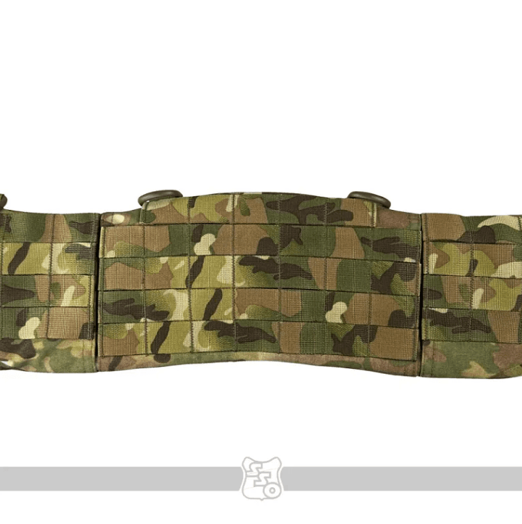 Разгрузочный Пояс-основа ВОИН MOLLE PRO с возможностью установки внутрь баллистических пакетов • Пояс-основа предназначен для переноски сумок, либо чехлов с креплением Molle. • Пояс имеет анатомическую форму. • Данный пояс можно использовать взамен штатного на патрульных рюкзаках. Единственным условием является возможность снять штатный. Примерами где возможна замена – это наши модели рюкзаков АТАКА (2, 4 и 5) и ВОИН. • Конструкция пояса позволяет установить в него экран мягких бронеэлементов (арамид или СВМПЭ). • Для придания жёсткости конструкции имеется внутренний съёмный пластиковый каркас. • Для амортизации и снятия нагрузки с поясницы, в пояс вставлена мягкая прокладка толщиной 1 см (изолон). Её можно использовать в качестве шаблона для самостоятельной нарезки мягких бронеэлементов. • На внутренней части варбелта есть липучка для крепления климатических амортизационных подпоров. КАП в комплект не входят! • Регулировка по талии происходит благодаря внутреннему съёмному поясному ремню. Ремень жёсткий и имеет ширину 5 см. Фиксация ремня внутри пояса происходит благодаря липучке. • Ремень комплектуется фастексом из морозоустойчивого полимера – ацеталя. Чтобы расстегнуть фастекс, необходимо использовать две руки, т.к. на нём три или две кнопки. • С обоих боков (снизу), изделие имеет отверстие для крепления набедренных платформ, либо набедренных кобур и кобур с полицейским креплением. • Пояс не комплектуется плечевыми лямками, но их использование настоятельно рекомендуется. Они позволяют более равномерно распределить нагрузку, а также отрегулировать его расположение по высоте. • Толщина пояса-основы – 2 см. • Высота основы – 14 см (за исключением мест сильных изгибов).