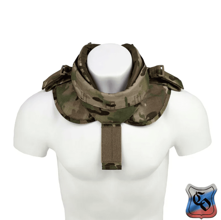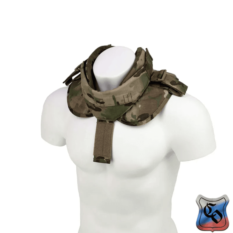Модуль защиты шеи «ЗШ-1» от компании ССО (СоюзСпецОснащение) Универсальный чехол для размещения арамидного экрана и бронепали для защиты шеи и прилегающих участков от осколков. • Защита шеи состоит из боковых лепестков и переднего горжета (съёмного и регулируемого по размеру). Сзади лепестки перекрывают друг друга, чтобы не мешать стрельбе лёжа. При этом площадь защиты шеи сзади не уменьшается. • Крепление к плитнику производится с помощью липучки. К передней панели нижним ремнём горжета на липучку в районе груди, которая обычно используется для размещения шевронов и неймтапов. Ремень, который используется для крепления к передней панели сверх обшит мягкой частью липучки, чтобы не уменьшать исходно предусмотренную на плитнике площадь. К задней панели к верхней части подкладки. Все крепления интуитивно поняты. • Дополнительная фиксация на плече происходит с помощью системы из ременной ленты с липучками. Если параллельно с ЗШ-1 используется наплечная защита, то для этого с каждой стороны в ремни вшиты двухщелёвки к которым происходит крепление ЗН-1 или ЗН-2. • Вес чехла без мягких бронеэлементов из ткани плотностью 500D ~ 140 г. ЗШ-1 пустой чехол, не обладающий защитными функциями - от 2500₽ ЗШ-1 вместе с баллистическим пакетом из свмпэ бр1 - 9900₽ ЗШ-1 вместе с баллистическим пакетом из свмпэ бр2 - 15000₽ ЗШ-1 вместе с баллистическим пакетом из арамида бр1 - 11000₽ ЗШ-1 вместе с баллистическим пакетом из арамида бр2 - 18500₽ Доступна для заказов в цветах: мох, мультикам, емр.